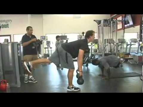 - Be sure to maintain a flat back position as the dumbbells reach knee/shin level.