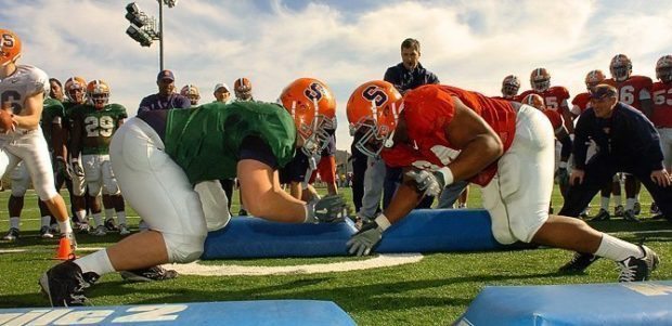 If you can’t find a partner, find time to train on your own. There are elements of every position that you can practice by yourself. Quarterbacks can work on their footwork, drop, and scrambling. Receivers can work on their routes and their release off the line. Linemen can work on their first move, footwork, and hands. Defensive backs can work on their backpedaling and break to the ball…and there’s much more.