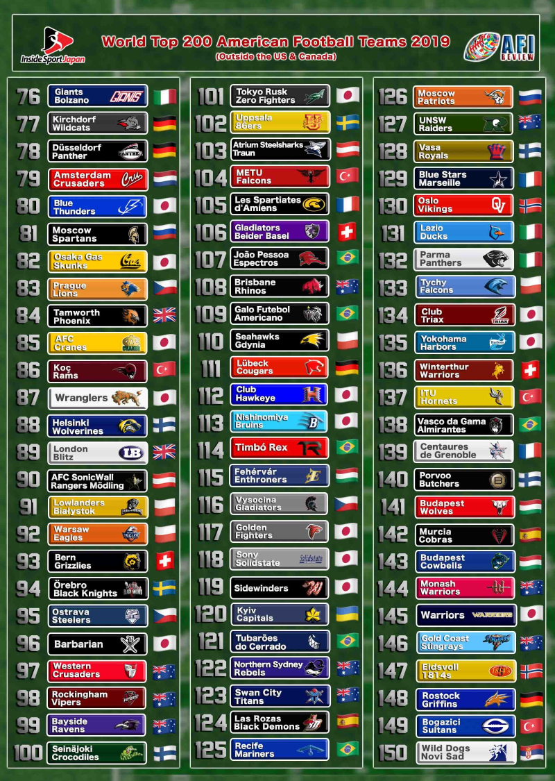 American Football International and Inside Sport Japan have teamed up to produce a ranking of the Top 225 American football teams outside of the United States and Canada.