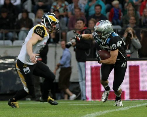 [su_dropcap]G[/su_dropcap]ermany’s Berlin Adler spoiled the chances of Europe’s top ranked Swarco Raiders from making the Big6 European Football League final by beating them 18-10 in the tough confines of Innsbruck’s home stadium. A crowd of 6,000 looked on as Berlin ground out a defense-first battle. Both defenses ruled the evening and both were sparkling, filled with playmakers. For a first hand look check out the full GAMEFILM and the end of this recap.