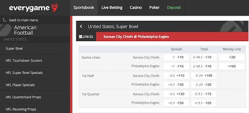- EveryGame — $500 Match Deposit Bonus for Eagles vs Chiefs