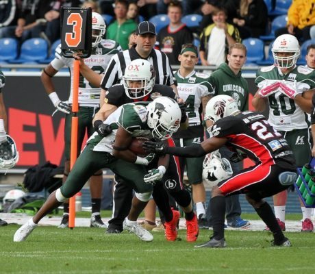 This made itself particularly clear in the second half. Schwäbisch Hall began their season with the motto ‘Challenge Accepted’ after the defeat in the German Bowl last season. And after the game it can be said the defense of the Unicorns has shown that it was ready for the Lions. The Lions offense scored no second half points. Again and again, the defense of the Unicorns was successful with their aggressive play.
