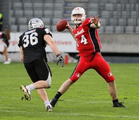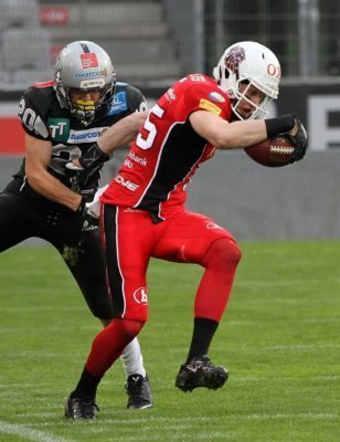 Trailing late in the game the Lions scored on a fourth-and-four 50-yard TD pass. It was the German champion’s first lead of the game. The Raiders had one last shot to regain the lead, but missed twice on passes into the endzone.