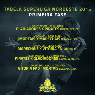 The first game of the season 2015 will be the duel between Roma Gladiadores and Recife Pirates. The two teams face off on April 11th in Moraisão stadium in Maranguape, Ceará. On April 12th, Aracaju Imortais and Maceió Marechais face off in SEST/SENAT in Aracaju, Sergipe.
