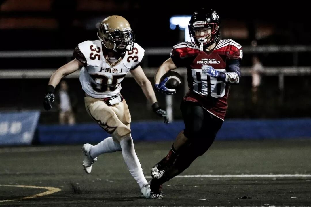 Both teams clamped down on defense in the second half, but it was the Warriors who added to their lead, with Gardner, playing safety, making his second interception of the game and returning it 65 yards to make it 26-14. Leung’s second touchdown run of the game came in the fourth quarter, and the Warhawks had a chance to take the lead late in the game, but a fourth-down interception by Yang Qu (#10) sealed the win for the Warriors. A second long-distance trip in two weeks looms ahead for the Warriors, as they will travel to Chengdu to take on the Pandaman in the semifinals on Saturday.