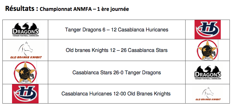 Organized in Tangier, Morocco at the Abi Abbas Assabti school, the first day of the Association Nationale Marocaine de Football Américain (ANMFA) championship tournament saw the Casablanca Stars take the top of the standings after two victories.