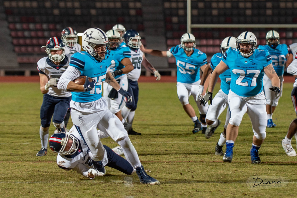 One of the most impressive performances of the day was without a doubt that of the Marseille Blue Stars. They dominated the Montpellier Hurricanes from start to finish with QB Kaleb Scott throwing for 269 yards and six touchdowns.