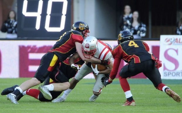 It is tough to pick out stars in this one. For Germany, with tailback Danny Washington struggling to get on track (16 carries for a mere 37 yards), the load fell to quarterback Marco Ehrenfried and he delivered passing for 268 yards (20 of 34, 3 ints.) and three touchdowns with his top receiver Jan Hilgenfeldt catching five passes for 124 yards while also kicking a field goal and all the PATs. Of course, Andreas Hoffbauer, Austria’s unrelenting tailback and workhorse led the charge for his team, carrying the ball 24 times for 118 yards and a touchdown.