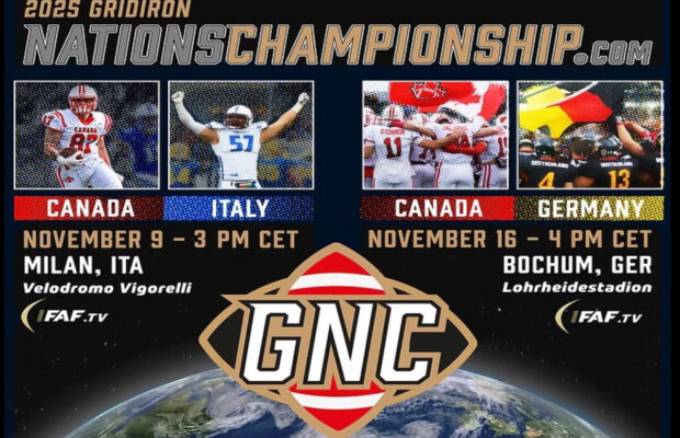 Launched in 2025 through the cooperation of the Canadian, German, and Italian football federations, the GNC brings together top men’s national teams in a round-robin series that spans two continents. The concept, inspired by rugby’s Six Nations, blends competition, collaboration, and continuity — all within the policy framework of the International Federation of American Football (IFAF) but managed independently by the participating nations.