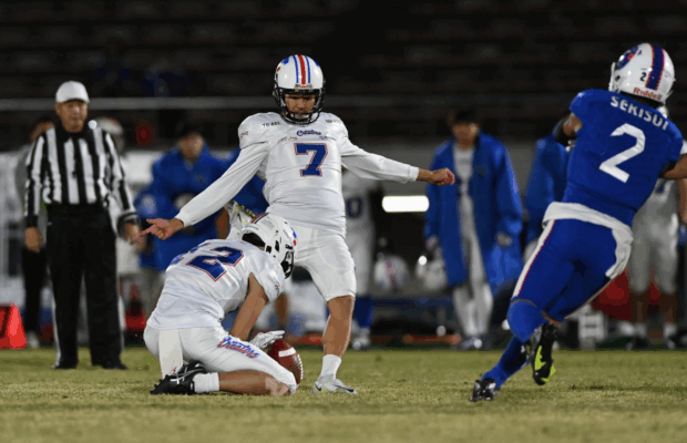 Tokyo Gas finally broke through for the game’s first touchdown late in the third quarter when quarterback Yuhito Taniguchi connected with tight end Sota Miwa on a 3-yard pass. Taniguchi finished an efficient 21-of-34 for 236 yards. Trailing 13-3, Sekisui mounted a furious comeback in the final quarter. Quarterback Garrett Safron scored on a 4-yard run and, with just over two minutes remaining, kicker Toshiki Sato nailed a pressure-packed 42-yard field goal to tie the game and force overtime.