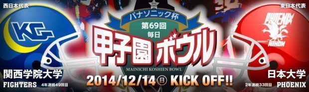 On Sunday, December 14th Japan’s College American Football championship, the 69th Koshien Bowl, will take place at Hanshin Koshien Stadium (Hyogo Prefecture), Toyko, Japan.
