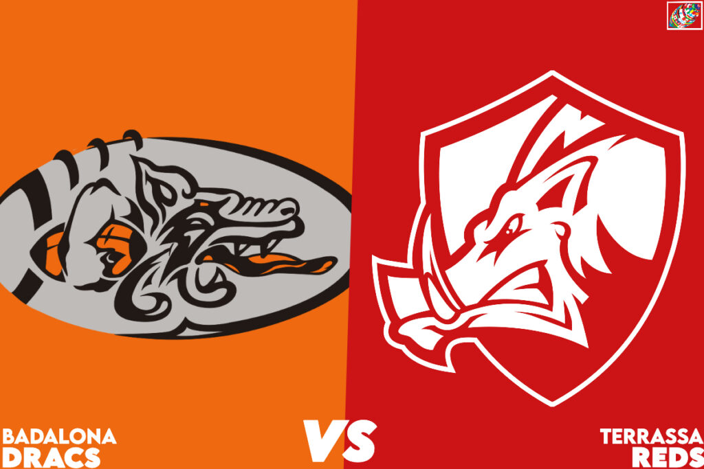 The Badalona Dracs (4-1-1) host the unbeaten Terrassa Reds (4-0) in a crucial Spanish LNFA Eastern Conference showdown that could determine the top playoff seed, with the Reds having won their previous meeting 21-13 in Terrassa.