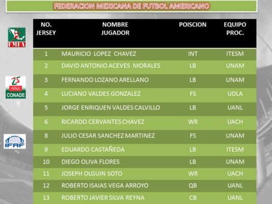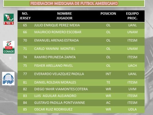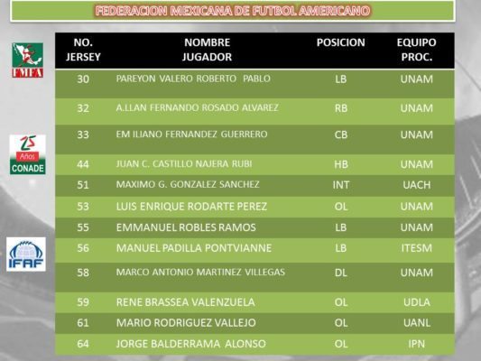 On Tuesday, the Federacion Mexicana De Futbol Americano (FMFA) released it’s preliminary roster of Team Mexico. The roster named 55 players that could be part of the final list of 45 players who will attend the Canton, Ohio to play in the IFAF World Championships. Mexican head coach Raul Rivera was clear in stating;