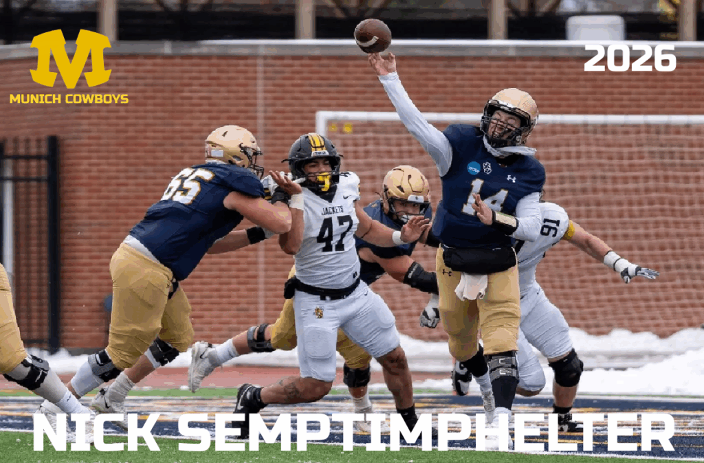 The Munich Cowboys, looking to improve upon a middle-of-the-pack passing offense, have signed quarterback Nick Semptimphelter fresh off his record-setting collegiate career at John Carroll University to lead their attack for the 2026 German Football League season.