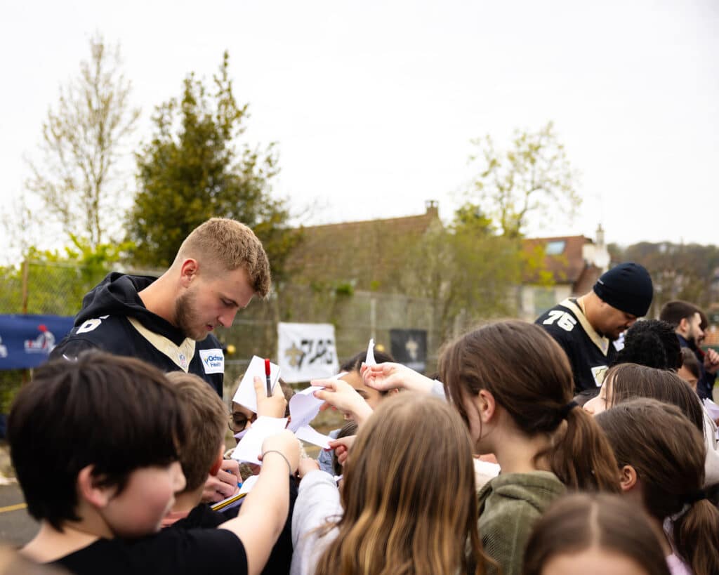 Benson’s visit included a close look at young French athletes during a flag football event organized by the Quarks of Villebon-Longjumeau. With the 2028 Olympics approaching, flag football is becoming increasingly important for both the Saints and the FFFA. This trip underscores the team’s dedication to nurturing and inspiring the next generation of athletes in France.