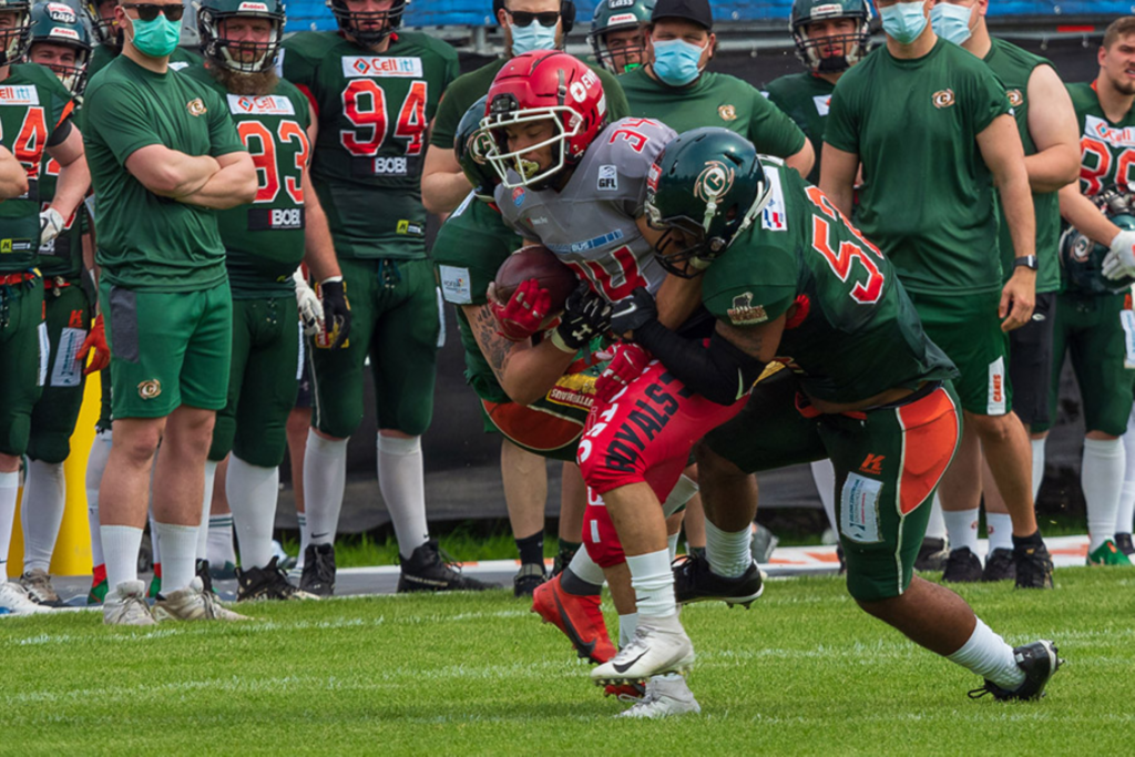 It goes without saying that the Potsdam squad is loaded with an impressive list of imports. And also, the two games were played against a Kiel Baltic Hurricanes side that has not only received thrashings from the Royals this season but also the Cologne Crocodiles. Still, there’s no mistaking the power and the consistency that Mayon gives the Potsdam offense.