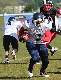 6 second half interceptions saw the Yorkshire Rams fall to a 24-6 defeat. After a tight opening to the game, with mental errors and penalty flags throughout, the Jets were able to get on the board first with a short field goal after a shanked Yorkshire punt and a strong defensive stand. The Jets were to show their own defensive might soon after stopping the Rams on both a 4th down and forcing a missed field goal.