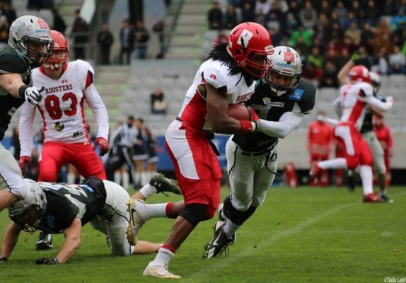 The 2,850 spectators braved the cold of Innsbruck’s Tivoli Stadium and were rewarded with an entertaining game. Raiders WR Kyle Callahan (6 receptions, 202 yards, and 2 TDs) and Roosters WR Bernard Luster (5 receptions, 133 yards and 1 TD) were the games’ MVPs.
