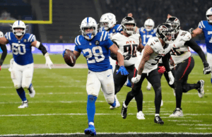 Taylor runs for 244 yards and 3 TDs for Colts in 31-25 OT win over Falcons in Berlin