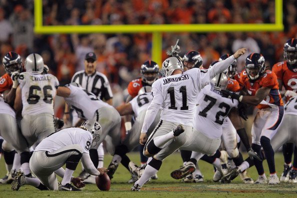 Janikowski attended Florida State University where he became the 3rd all-time scorer for the team over three years with a total of 324 points and won the Lou Groza Award two years in a row. He was signed to the Oakland Raiders as 17th overall pick in the 2000 draft, where he has played ever since. In fact, Janikowski holds the record for the most games played with the Raiders and is the only first round pick from that year still in the NFL.