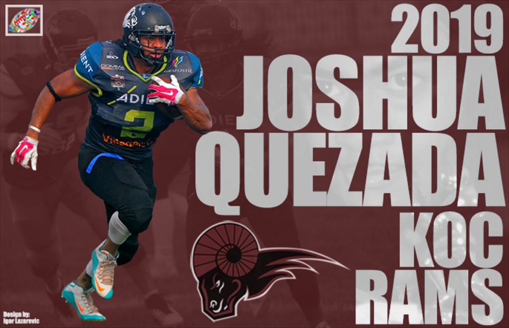 Turkish champions and AFI Europe #12, the Koc Rams, and have signed running back Joshua Quezada for the 2018 season.